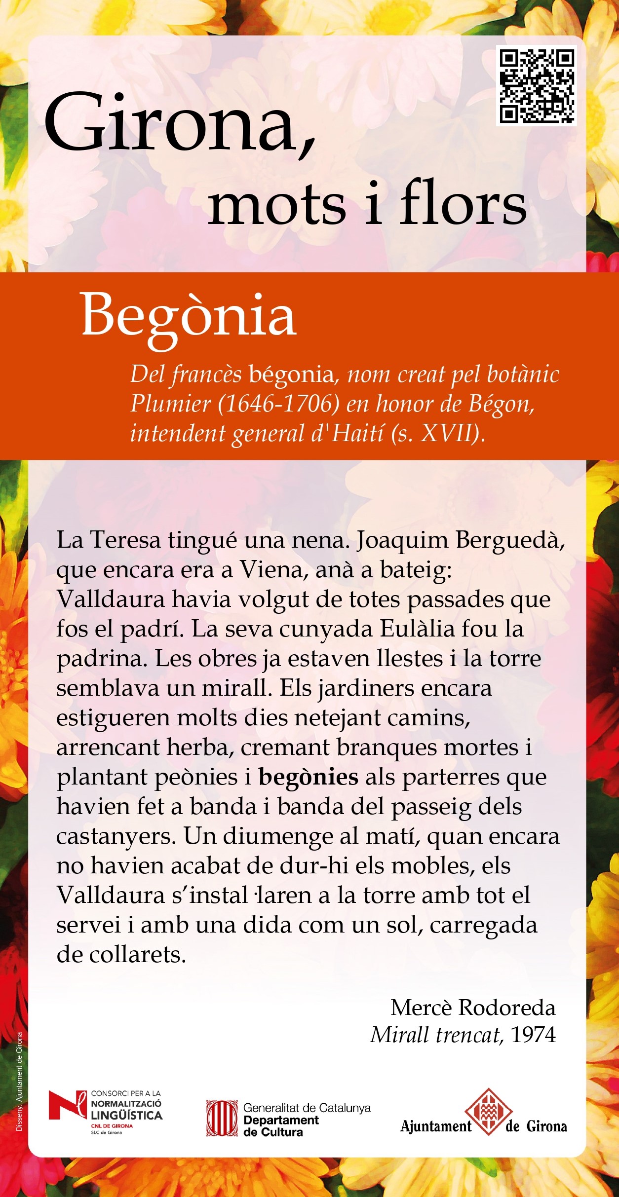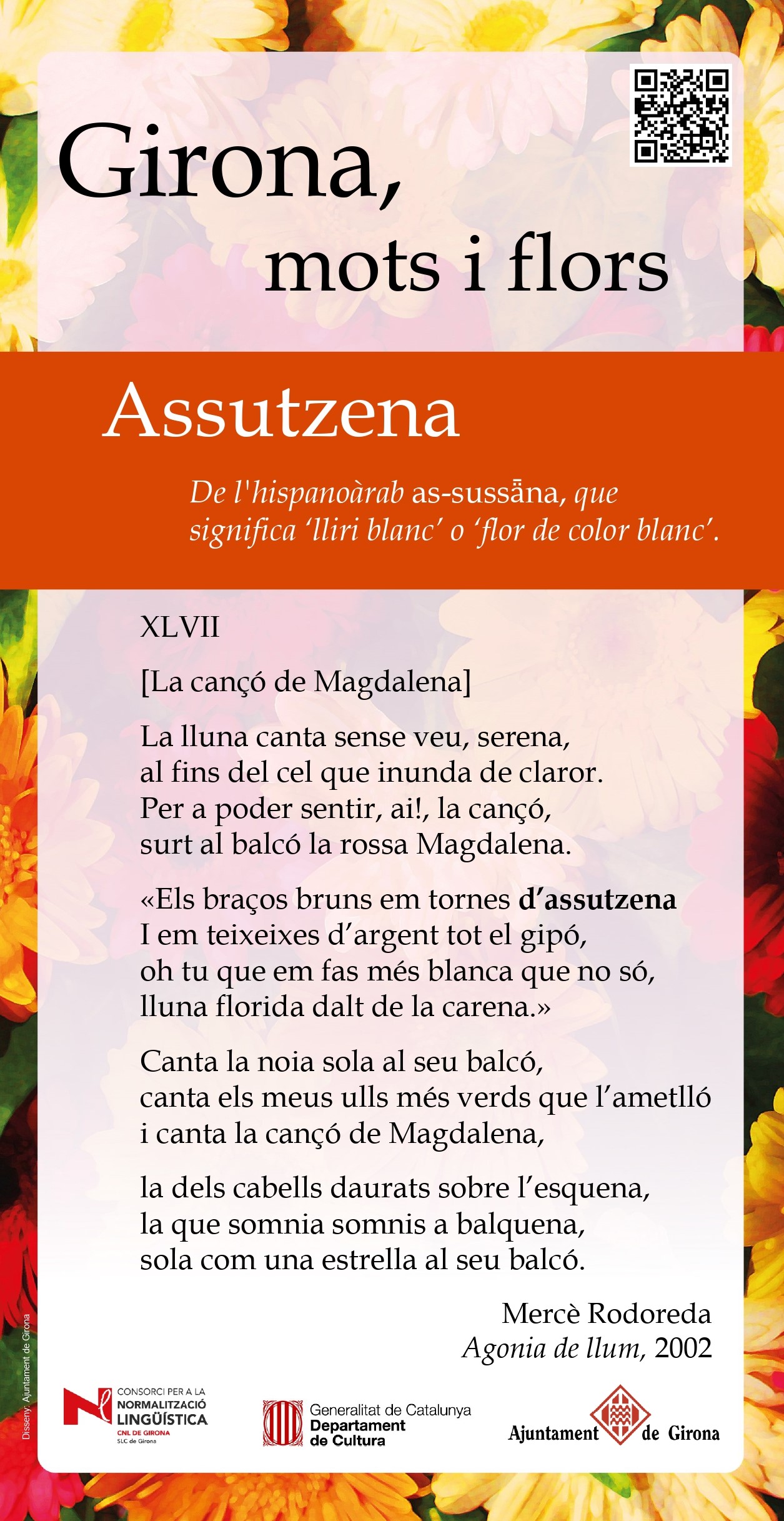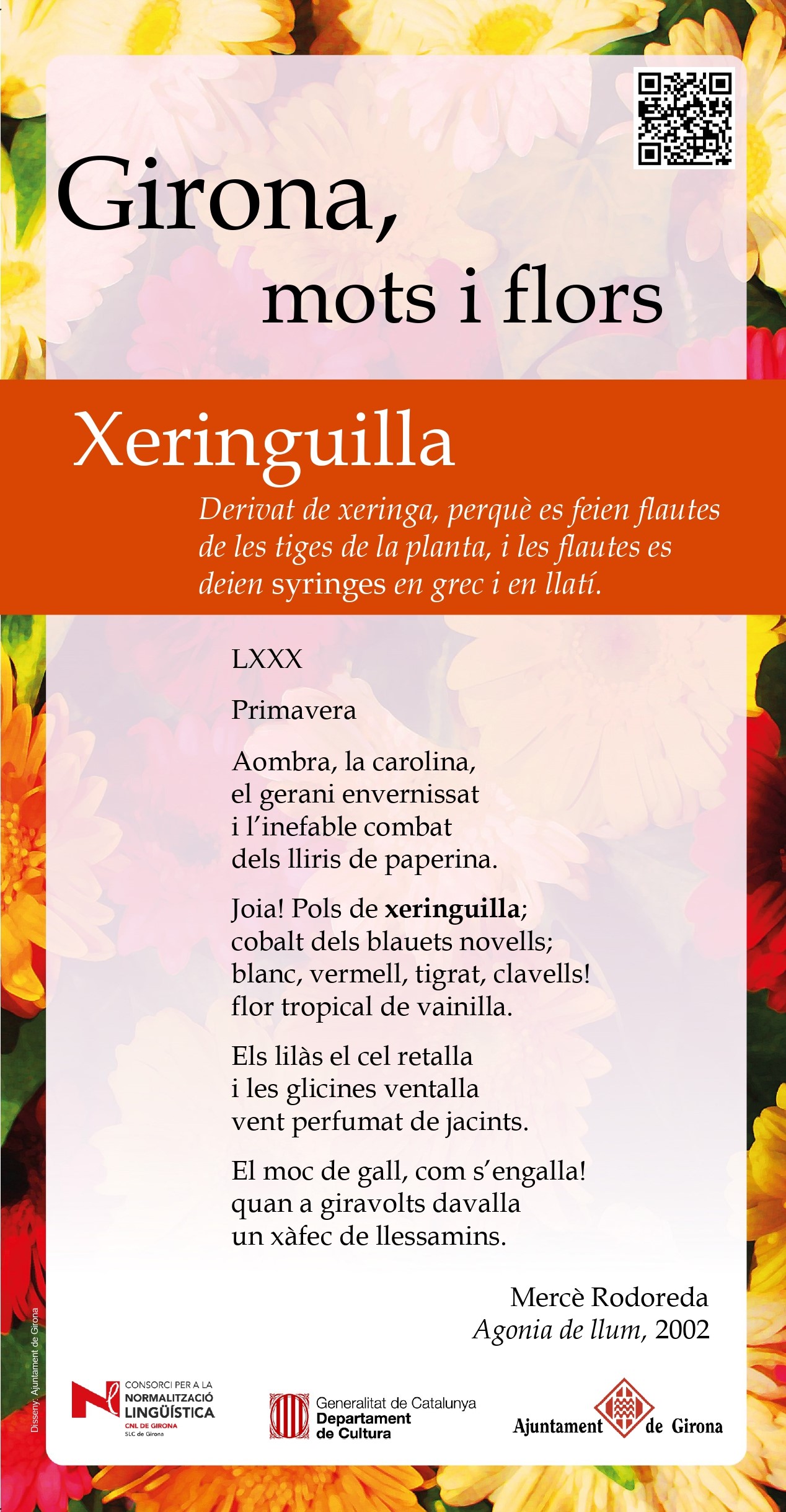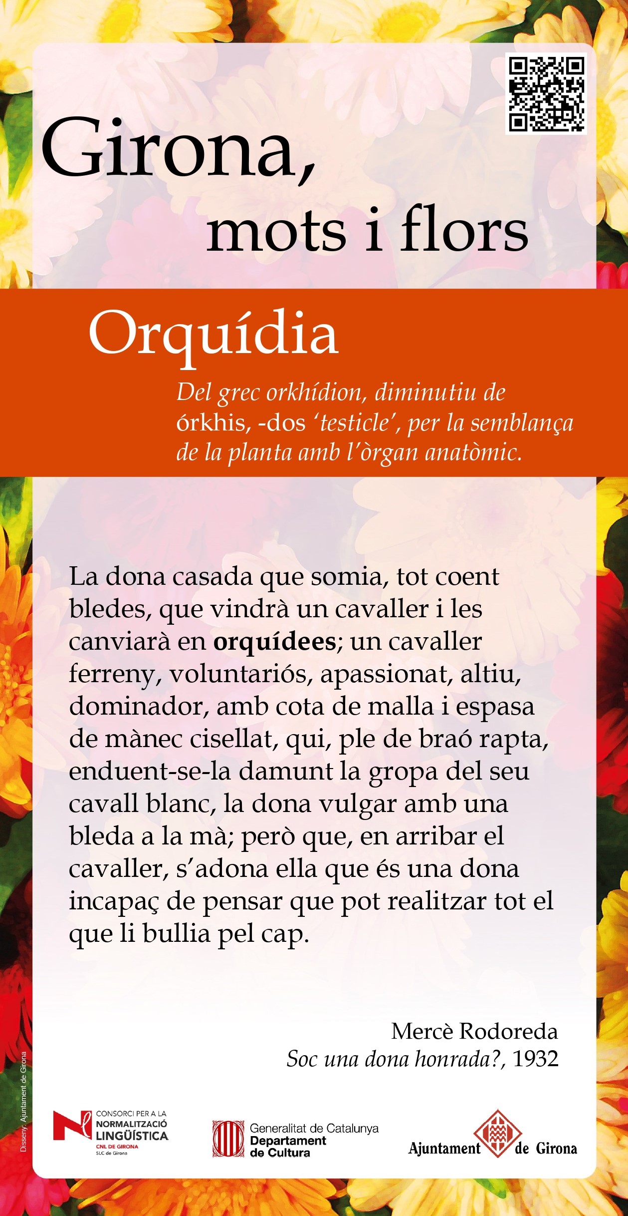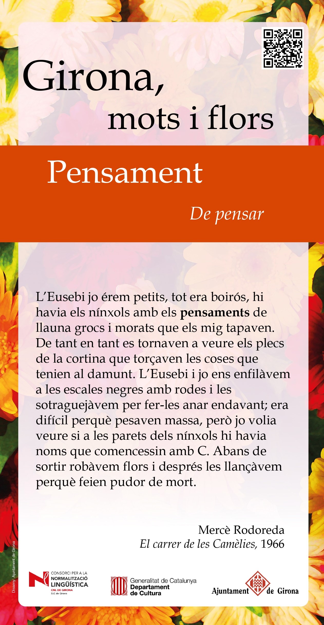 Els cartells i punts de llibre tenen el nom d'aquestes flors, la seva etimologia i un text que les il·lustra. En l’edició d’enguany s’han escollit textos de l’escriptora Mercè Rodoreda, en el quarantè aniversari de la seva mort. Les flors són molt presents en la seva obra. Als cartells i als punts de llibre hi ha un codi QR que porta a la pàgina web de la Fundació Mercè Rodoreda, que aglutina tota la informació de la vida i obra de l’escriptora.