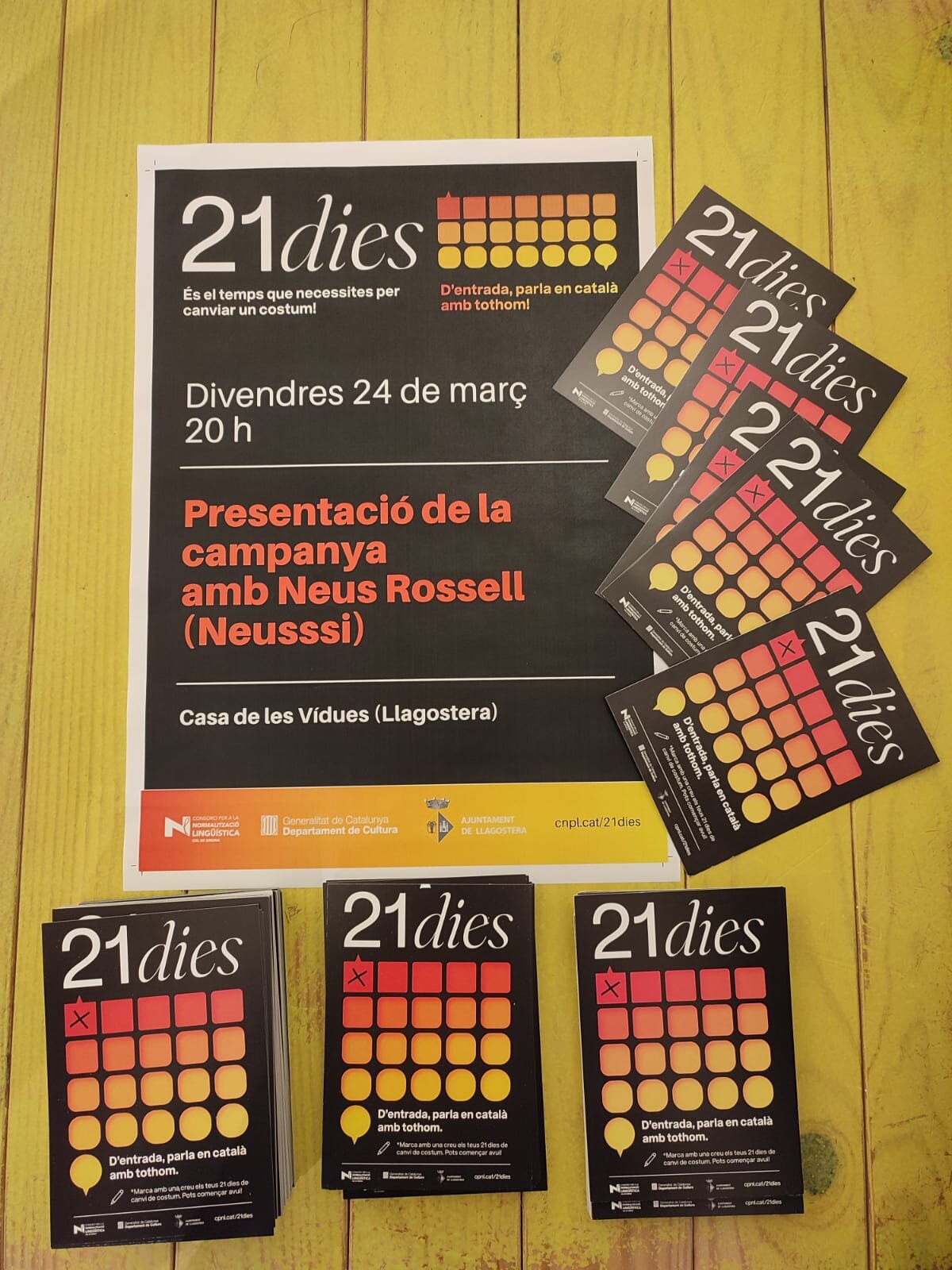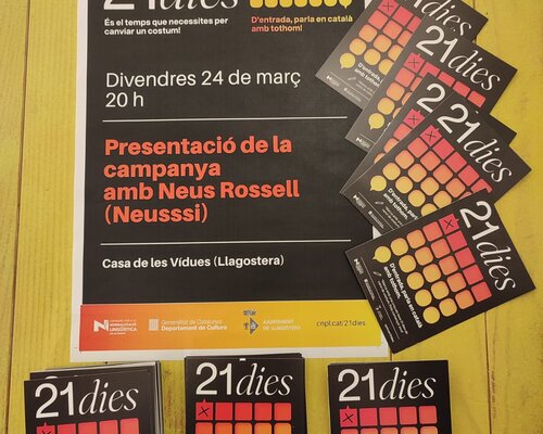 Del 7 de març al 2 d'abril es va dur a terme a Llagostera la campanya "21 dies. D'entrada, en català". L'objectiu de la campanya és capgirar l'hàbit dels catalanoparlants de canviar automàticament de llengua quan algú els parla en castellà o, senzillament, quan s'adrecen a algú que pels trets físics no reconeixen com un autòcton.