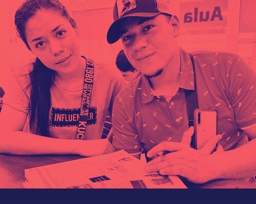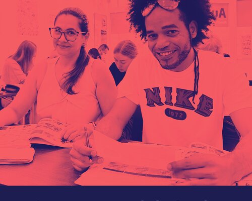 Alumnes dels cursos de l'Oficina de Català "donen la cara" per col·laborar amb les campanyes de difusió dels cursos. Conviden a aprendre el català en les llengües més presents a Lloret de Mar.