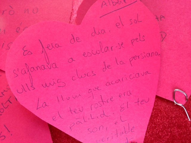 Convidem tothom a passar per la nostra parada a la Fira del Llibre i la Rosa per omplir una rosa amb paraules d'amor, amb declaracions d'amor.