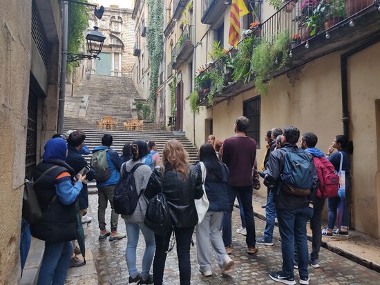 Com ja és habitual, l'acompanyament el van dirigir diferents guies de l'Associació Guies de Girona i es van anar fent aturades en diferents punts del recorregut, durant les quals els participants van poder escoltar, fer preguntes i parlar. L'objectiu de l'actuació és fomentar l'ús del català fora dels espais habituals d'aprenentatge i afavorir el coneixement del territori.