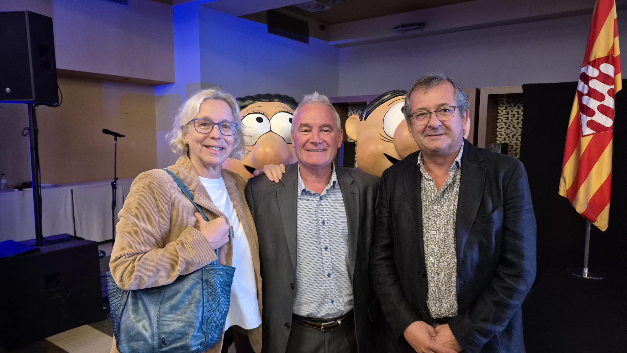 Montserrat Mas, directora del CNL de Girona i Josep Planas, tècnic de normalització lingüística, amb Josep M. Torras, antic gerent i activista en favor de la llengua catalana. |