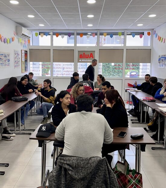 Els alumnes dels cursos de català assisteixen a una xerrada sobre el Dia de la Dona