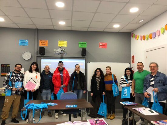 Alguns dels voluntaris van anar a l’aula del nivell bàsic 3 a conèixer els seus aprenents