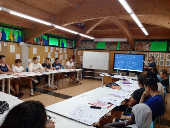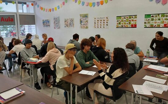 Els alumnes de nivell bàsic practiquen català fora de l'aula