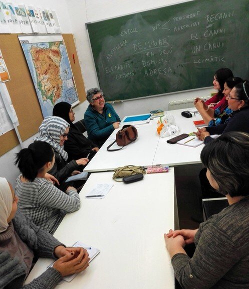 Una aprenenta és del Panjab i l'altra és basca. Totes dues estudien català a l'Oficina de Català d'Arbúcies i avui han conegut les seves parelles lingüístiques, dues arbucienques amb ganes de compartir el seu temps lliure i ajudar a practicar el català.