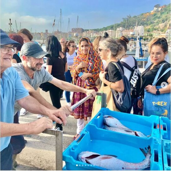 43 alumnes de l'Oficina de Català de Blanes han gaudit d'una visita guiada al port i la llotja de Blanes conduïda per GRENYAL, experiències gastronòmiques.