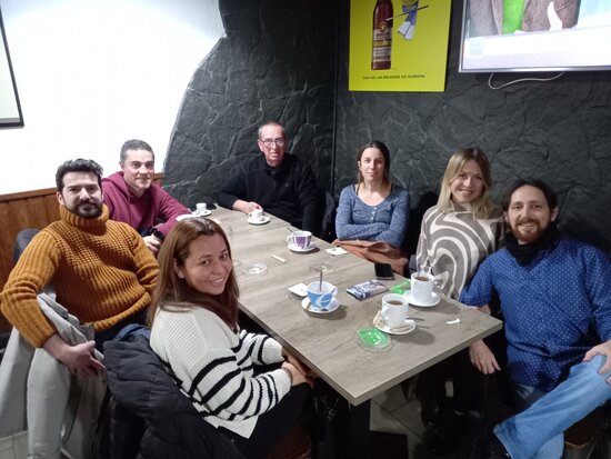 Can Serrallonga va acollir dijous passat un grup de parelles lingüístiques per fer una tertúlia conduïda pel voluntari David Palou, membre d'Òmnium Cultural de Salt.