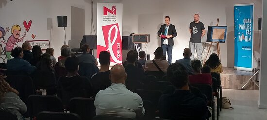 David Vila i Jessica Neuquelman, dels Llenguaferits, van oferir una xerrada sobre la diversitat lingüística i la situació actual del català.