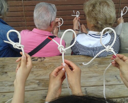 En aquest marc, doncs, i dos cops l'any (juny i octubre) duem a terme diferents tallers: Taller d'interpretació d'un mapa del temps: aprendre a interpretar els mapes del temps i introduir-se en conceptes específics de meteorologia així com la interpretació del temps en el mateix entorn; Taller de nusos: aprenentatge dels nusos bàsics més utilitzats en navegació; Taller de coneixement de les diferents parts/elements del vaixell; Taller d'història de la navegació, o un Taller de geografia: conèixer les platges i rieres del municipi des del mar (noms, situació, anècdotes...)