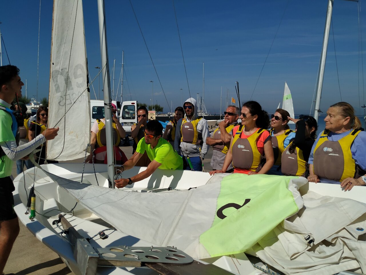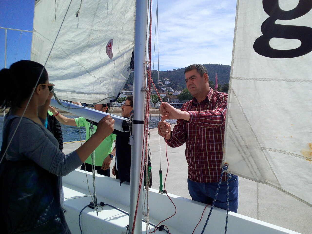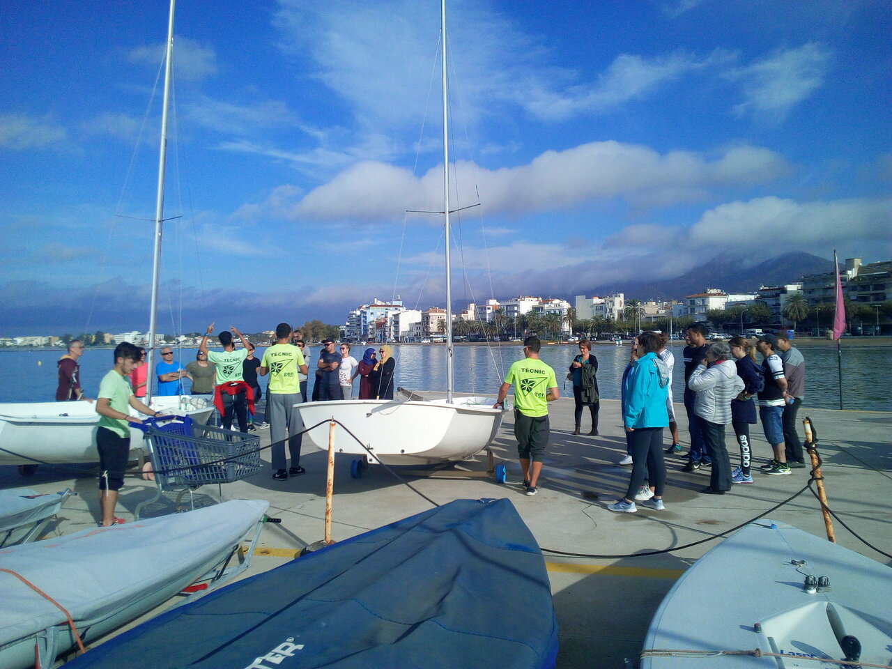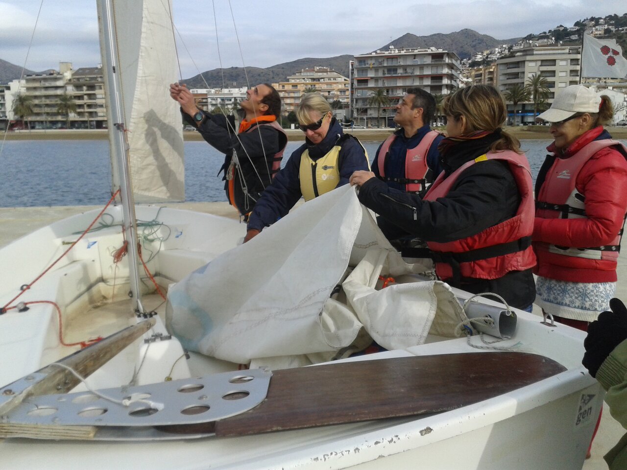 En la segona part d'aquests tallers, les persones participants ajuden a muntar i a preparar les barques de vela lleugera amb les quals, posteriorment, se surt a navegar per la badia de Roses, sempre que el temps ho permeti.