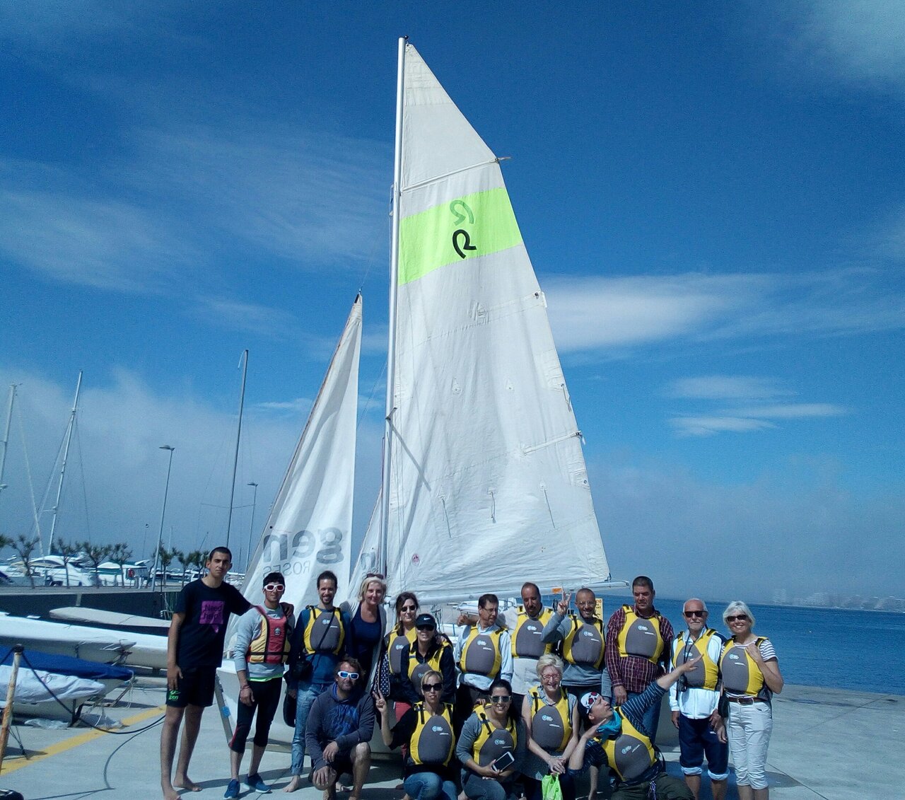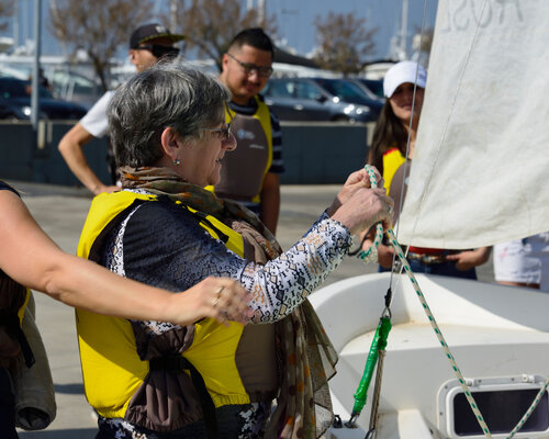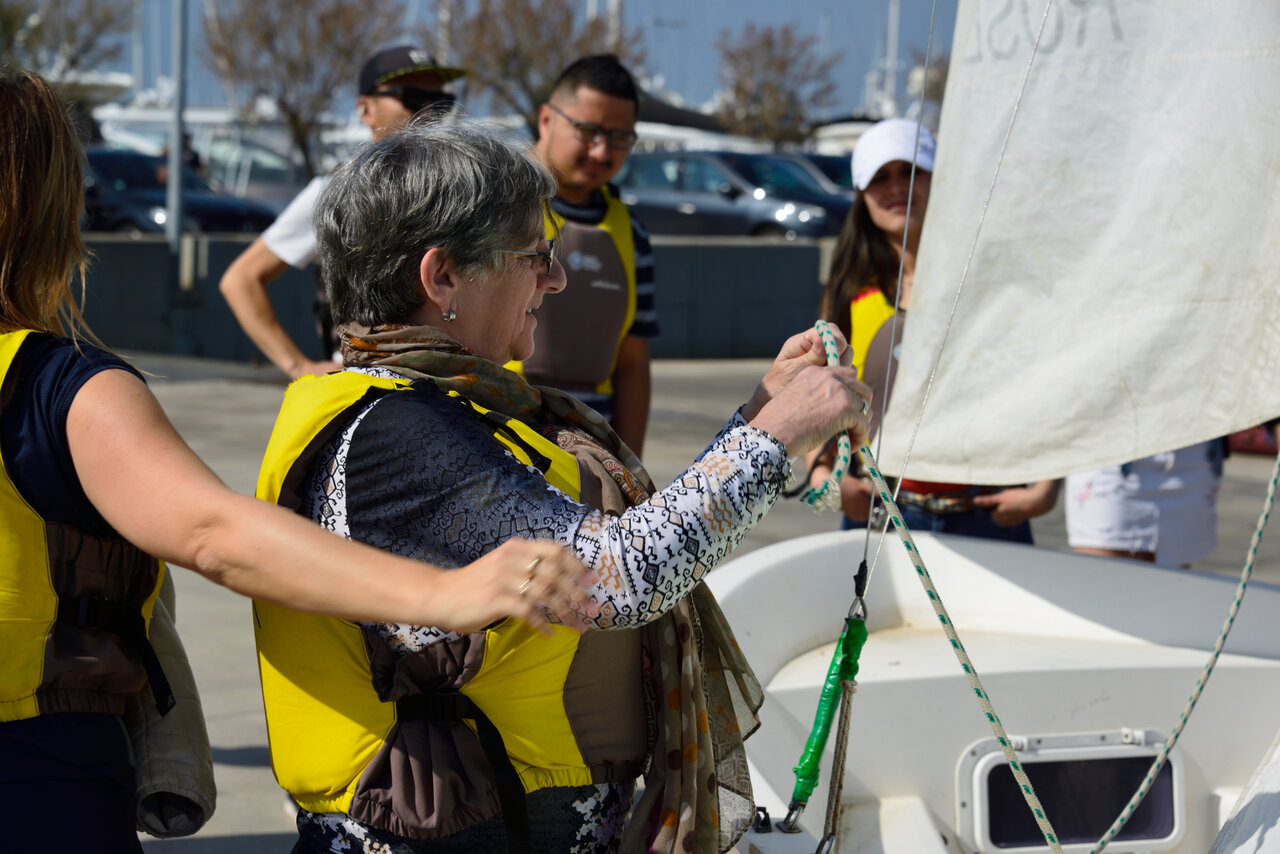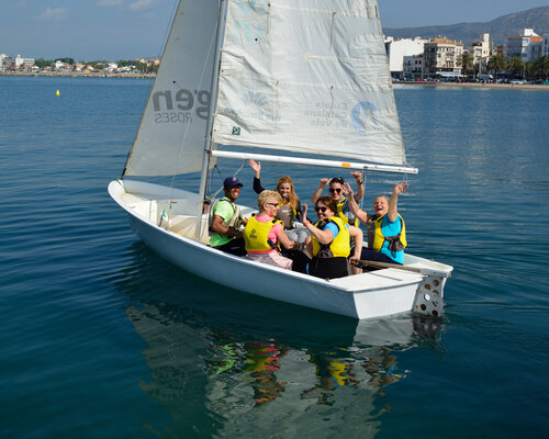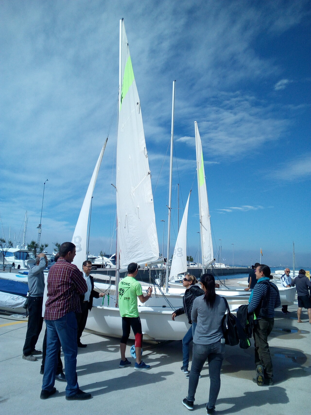 En la segona part d'aquests tallers, les persones participants ajuden a muntar i a preparar les barques de vela lleugera amb les quals, posteriorment, se surt a navegar per la badia de Roses, sempre que el temps ho permeti.