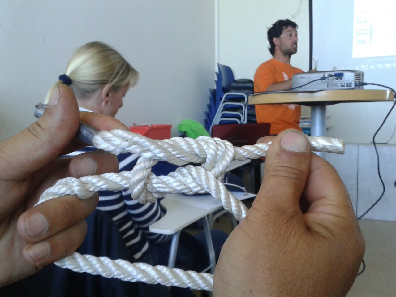 En aquest marc, doncs, i dos cops l'any (juny i octubre) duem a terme diferents tallers: Taller d'interpretació d'un mapa del temps: aprendre a interpretar els mapes del temps i introduir-se en conceptes específics de meteorologia així com la interpretació del temps en el mateix entorn; Taller de nusos: aprenentatge dels nusos bàsics més utilitzats en navegació; Taller de coneixement de les diferents parts/elements del vaixell; Taller d'història de la navegació, o un Taller de geografia: conèixer les platges i rieres del municipi des del mar (noms, situació, anècdotes...)