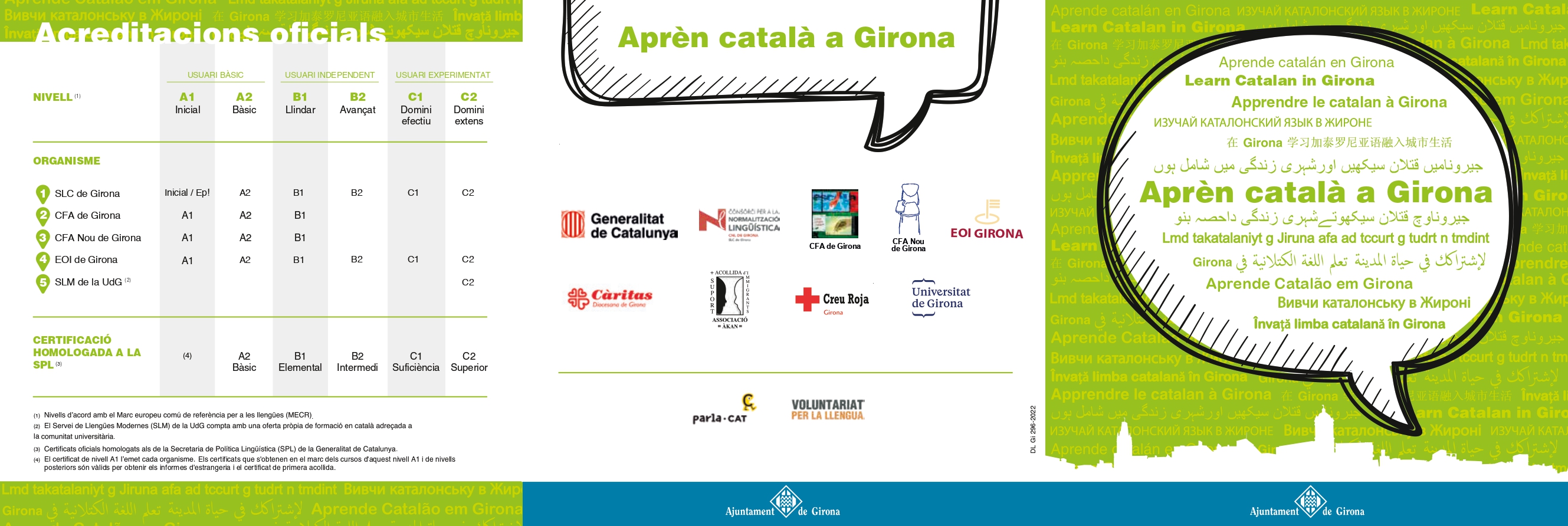 Ajuntament de Girona, Centre de Formació d’Adults, Càritas, Ser.Gi, Gentis, Fundació Privada Vincle, Creu Roja, Associació Àkan, ASOCOLGI (Associació Cultural de Colombians i Colombianes), AASS (Associació per a l'Atenció de Serveis i Solidaritat), Escola Oficial d’Idiomes, Servei de Llengües Modernes de la Universitat de Girona.