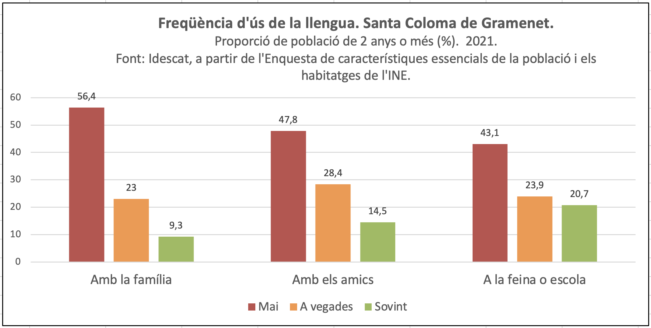 A continuació presentem un conjunt de dades i gràfics que permeten entendre la situació sociolingüística de Santa Coloma: