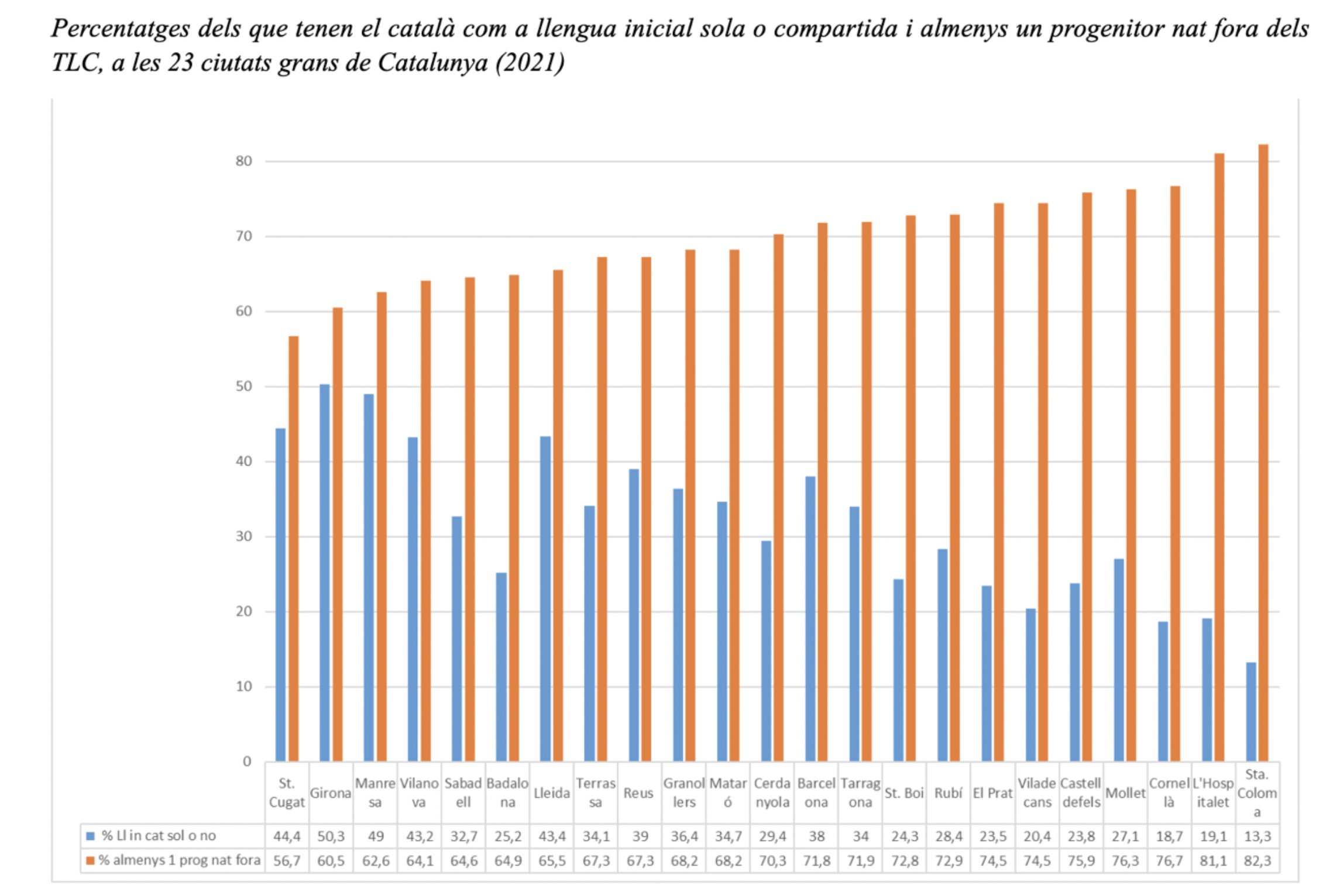 Índex: L'impacte demogràfic/ Competència lingüística/ Llengua pròpia i algunes reflexions terminològiques/ Per què es parla poc el català? Els catalanolingües/ Actituds i de tornada
