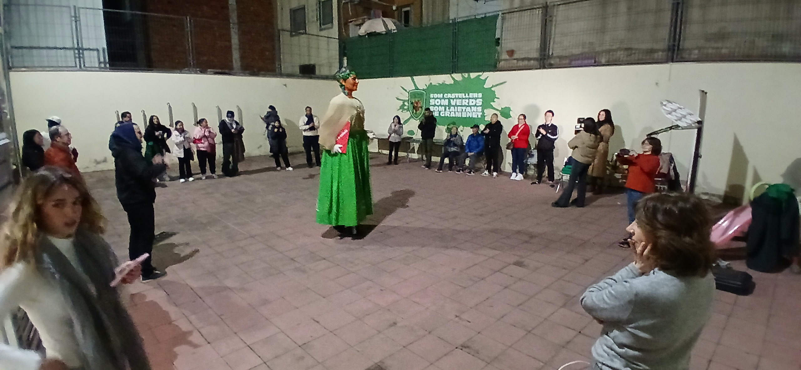 Això va ser possible perquè prèviament el CNL L'Heura organitzà un taller per aprendre a portar la gegantona. La formadora, Esther Planas, va fer una introducció sobre el món geganter i, tot seguit, les persones que van voler, es posaren una faixa i la feren ballar. Betevé Badalona va filmar la sessió i va entrevistar algunes persones.