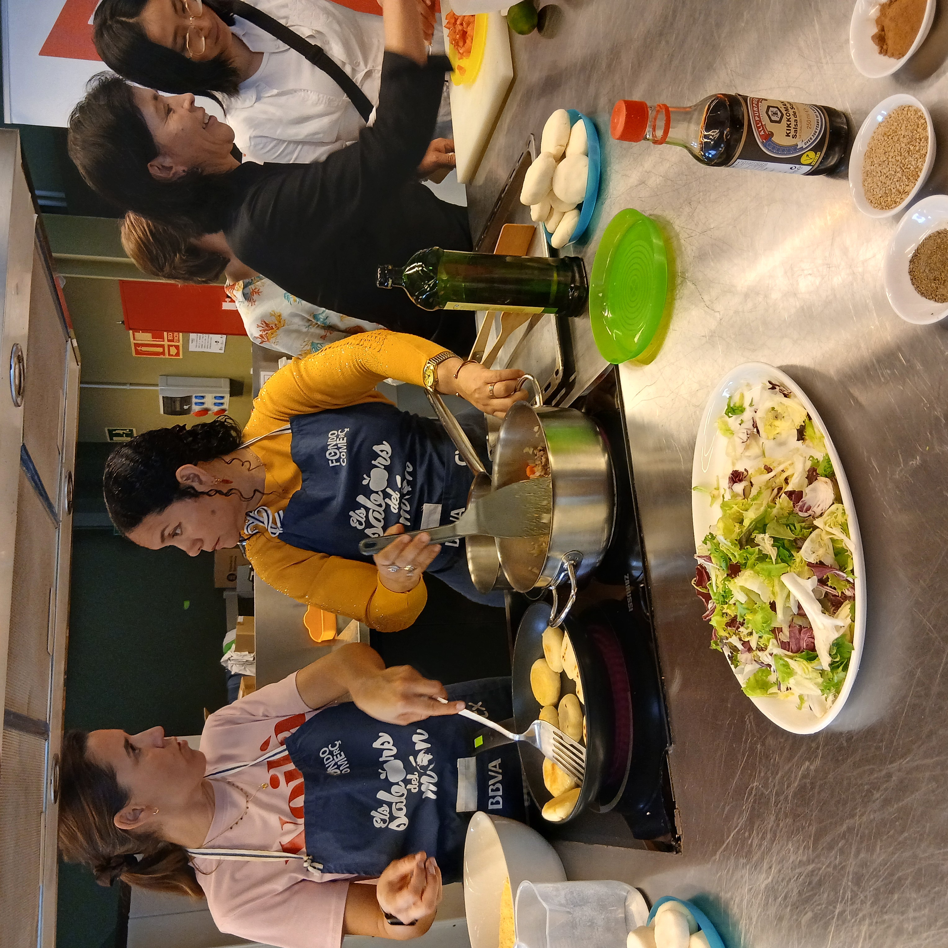 Dimecres passat una vintena d'alumnes del nivell Elemental 3 i algunes persones usuàries de la biblioteca del Fondo van poder gaudir d'una classe culinària per practicar la llengua catalana a mans de la cuinera professional Jackeline Villalba. Cugat Mèdia va venir a gravar la sessió per fer un dels capítols d'una sèrie documental.