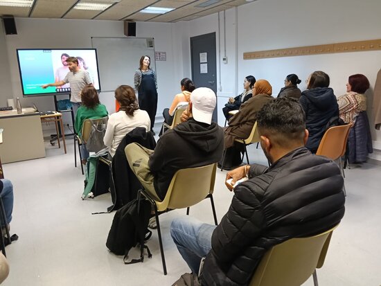 Els Llenguaferits, integrats per Jessica Neuquelman i David Vila i Ros, van impartir el taller Suma a l'aula al curs Bàsic 3 del CNL L'Heura. Naturals de França i de Sabadell, aquest tàndem de camisa de ratlles està convençut que les paraules són la millor eina per canviar el món.