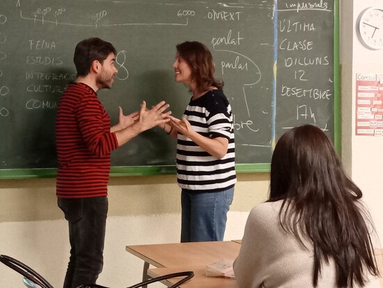 El tàndem Llenguaferits imparteix un taller als cursos del Bàsic 1 i Elemental 1sobre la importància d'aprendre el català.