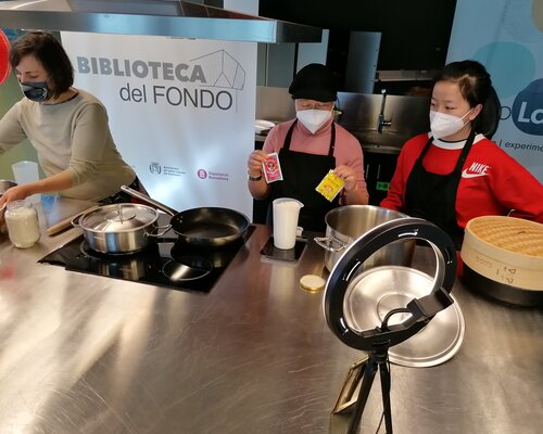 La Biblioteca del Fondo manté una relació molt estreta amb la comunitat xinesa, un dels grups més nombrosos i actius al barri del Fondo. La biblioteca col·labora cada any en l'Any Nou Xinès, organitzant tallers de cuina xinesa per a grans i per a petits. L'objectiu és la interacció que promou, per una banda, el coneixement de la cultura xinesa a la resta de comunitats culturals del barri i, de l'altra apropar la comunitat xinesa als serveis culturals compartits.