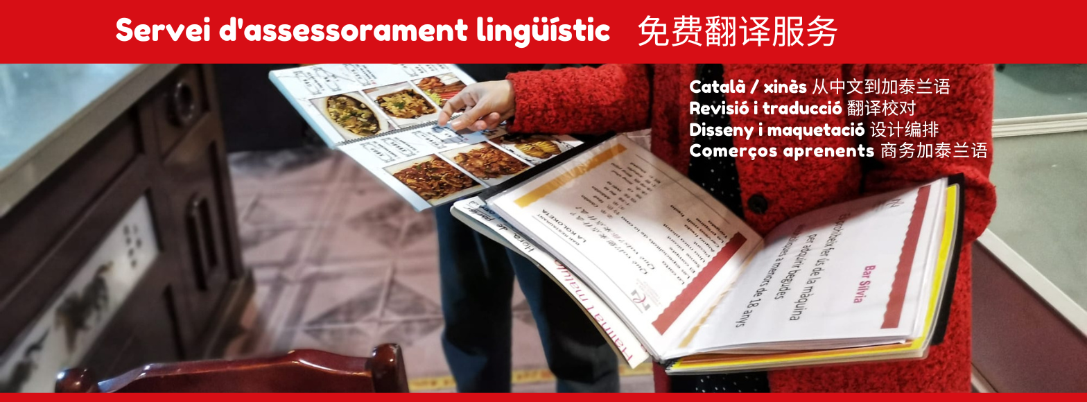 - Assessorament lingüístic gratuït (rètols i informació de comerços, cartes de restaurants, targetes comercials, t'ajudem a practicar les frases de català que més necessites per atendre els teus clients, etc.).
