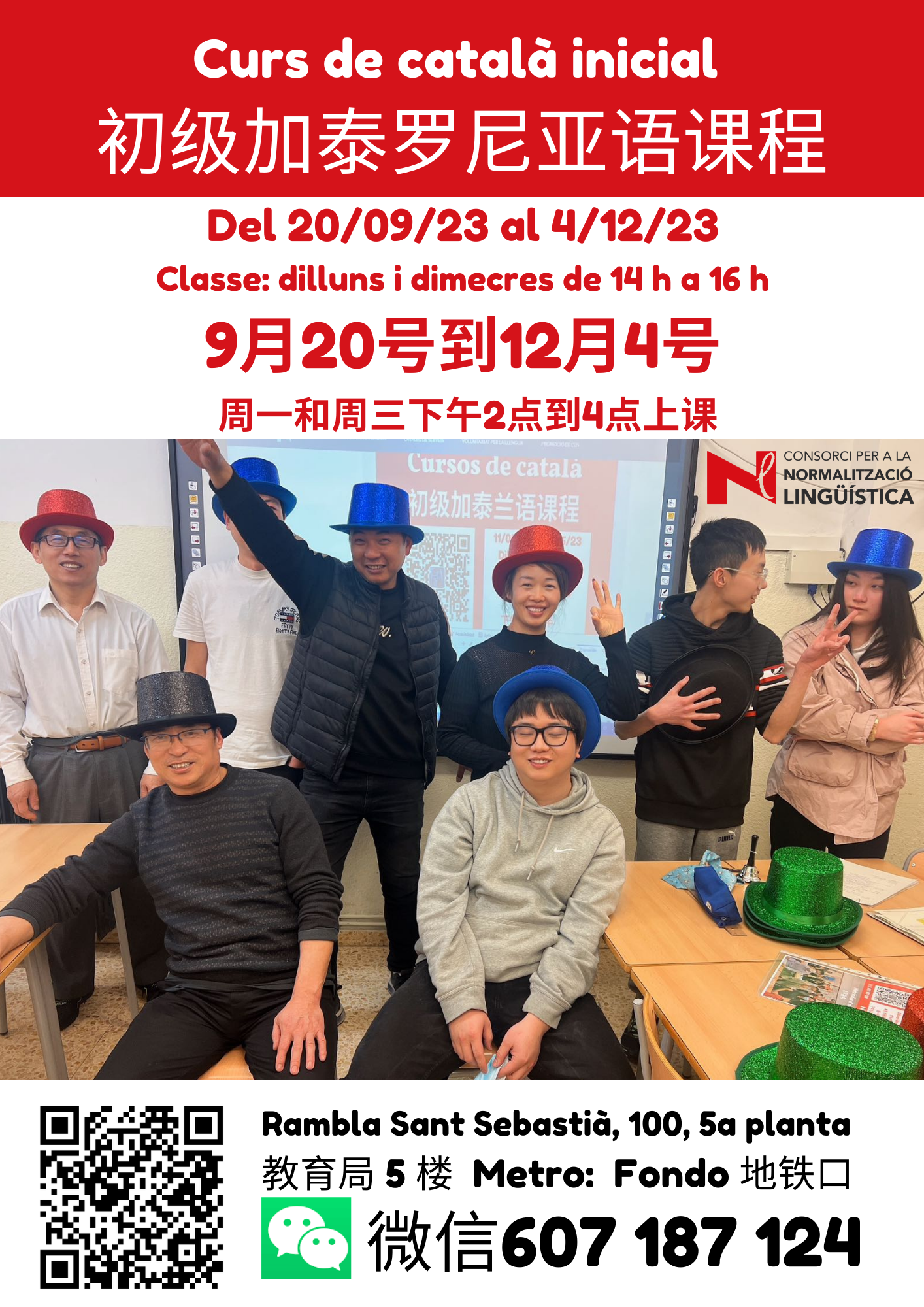 - Cursos gratuïts de 45 h de català per a persones adultes d'origen xinès.