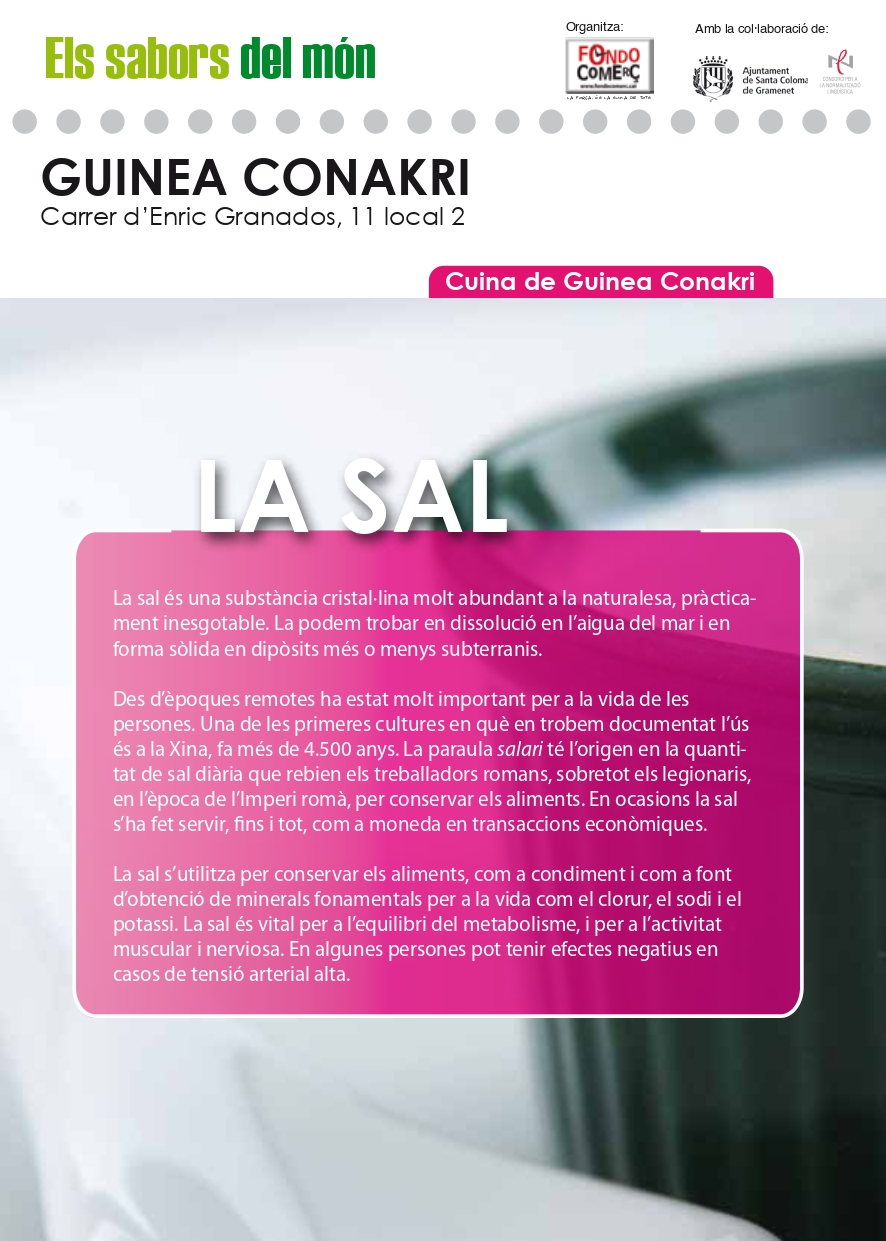 La sal és una substància cristal·lina molt abundant a la naturalesa, pràcticament inesgotable. La podem trobar en dissolució en l'aigua del mar i en forma sòlida en dipòsits més o menys subterranis.