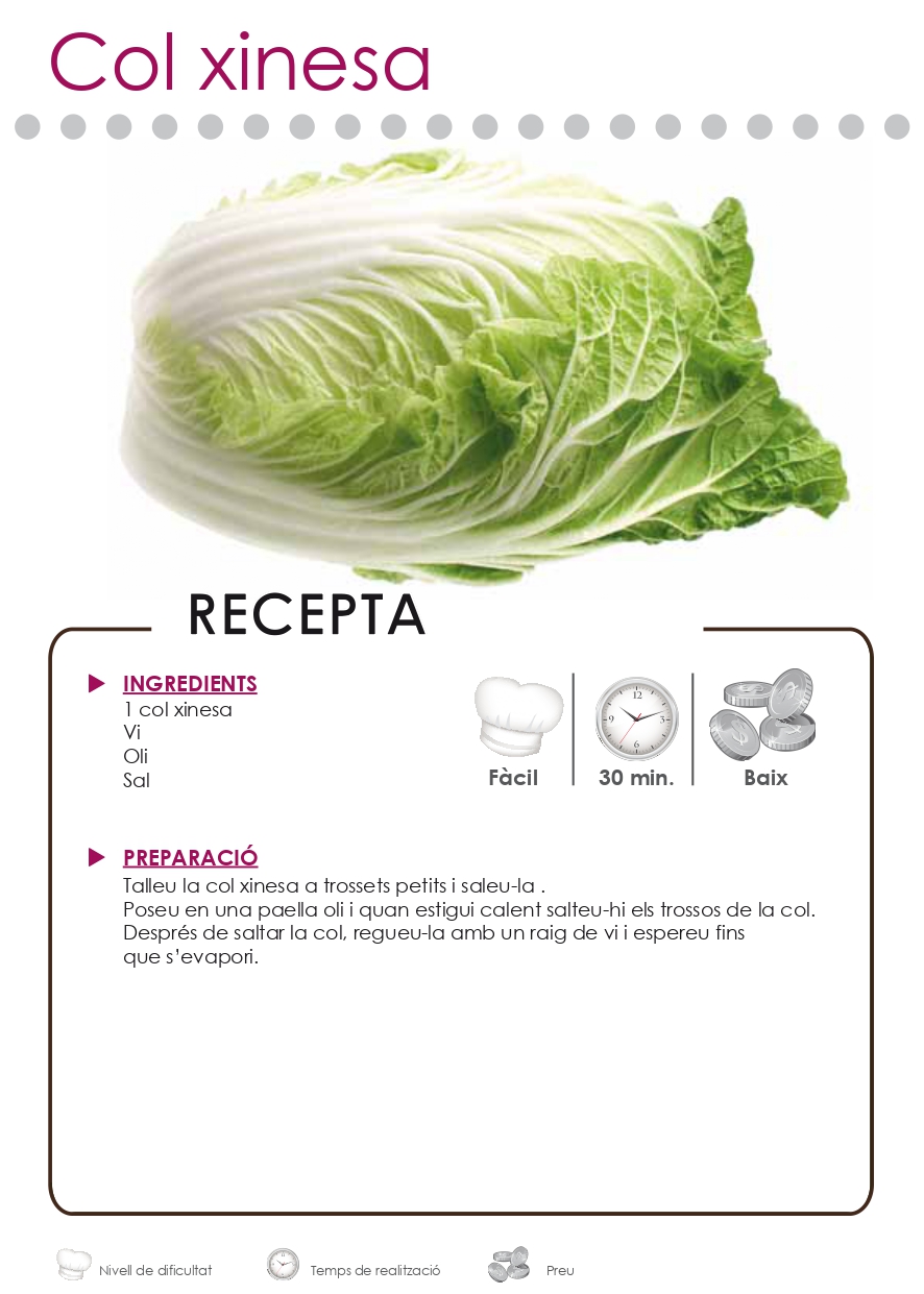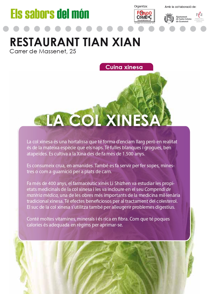 La col xinesa és una hortalissa que té forma d'enciam llarg però en realitat és de la mateixa espècie que els naps. Té fulles blanques i grogues, ben atapeïdes. Es cultiva a la Xina des de fa més de 1.500 anys. Es consumeix crua, en amanides. També es fa servir per fer sopes, minestres o com a guarnició per a plats de carn.