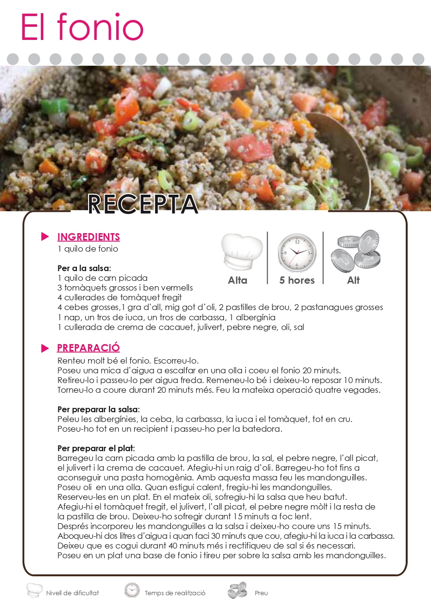 El fonio és un dels cereals més antics -potser el més antic- de l'Àfrica Occidental. Algunes llegendes el situen amb l'origen de l'univers; de fet, el gra del fonio és el po, que significa «germen del món». Pot créixer en sòls no gaire fèrtils i en climes amb un règim de pluges força variable.Durant molt de temps va ser un producte marginal. Avui dia torna a estar valorat. Del fonio se n'aprofita tot: els animals en mengen la palla i amb les llavors se'n pot fer cuscús, pa, farinetes o cervesa. La palla també serveix com a material de construcció.