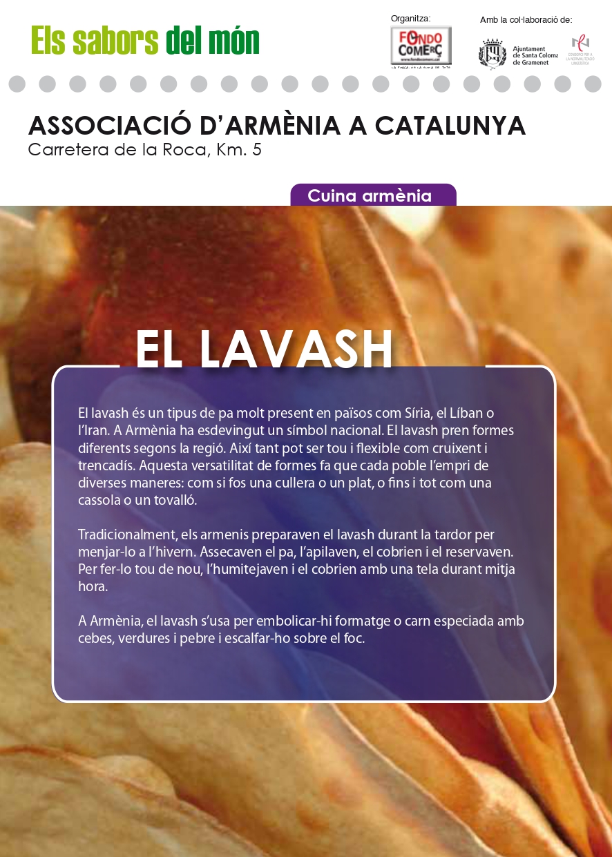 El lavash és un tipus de pa molt present en països com Síria, el Líban o l'Iran. A Armènia ha esdevingut un símbol nacional. El lavash pren formes diferents segons la regió. Així tant pot ser tou i flexible com cruixent i trencadís. Aquesta versatilitat de formes fa que cada poble l'empri de diverses maneres: com si fos una cullera o un plat, o fins i tot com una cassola o un tovalló.