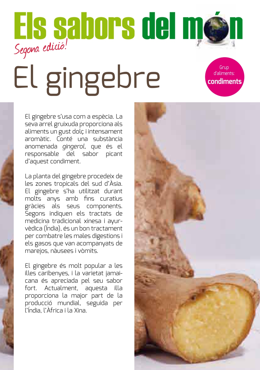 El gingebre s'usa com a espècia. La seva arrel gruixuda proporciona als aliments un gust dolç i intensament aromàtic. Conté una substància anomenada gingerol, que és el responsable del sabor picant d'aquest condiment.