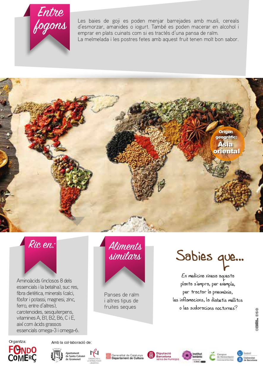 Les baies de goji es poden menjar barrejades amb musli, cereals d'esmorzar, amanides o iogurt. També es poden macerar en alcohol i emprar en plats cuinats com si es tractés d'una pansa de raïm. La melmelada i les postres fetes amb aquest fruit tenen molt bon sabor.