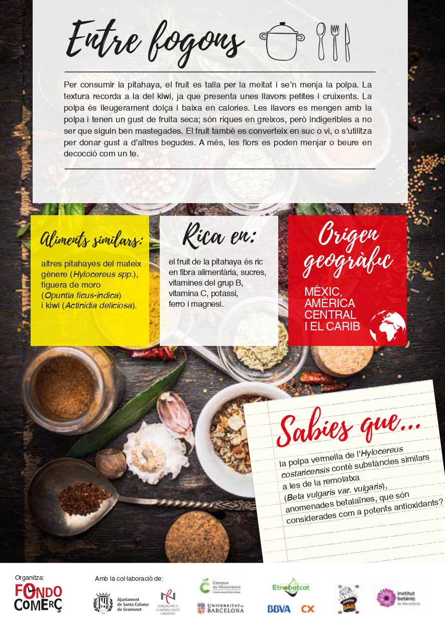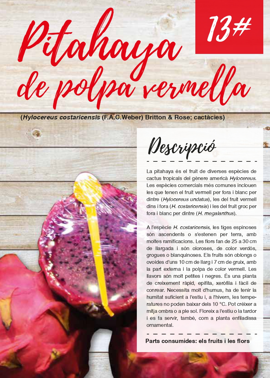 La pitahaya és el fruit de diverses espècies de cactus tropicals del gènere americà Hylocereus. Les espècies comercials més comunes inclouen les que tenen el fruit vermell per fora i blanc per dintre (Hylocereus undatus), les del fruit vermell dins i fora (H. costaricensis) i les del fruit groc per fora i blanc per dintre (H. megalanthus).