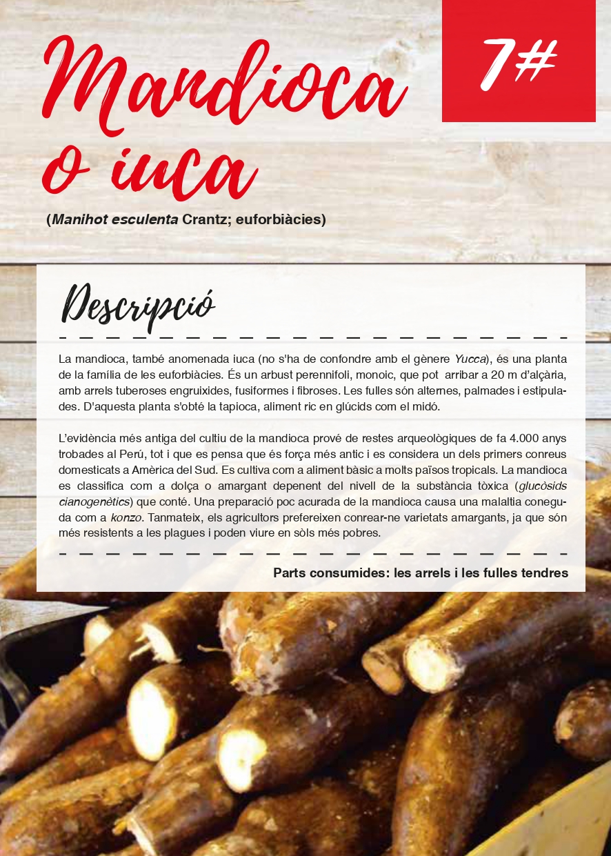 La mandioca, també anomenada iuca (no s'ha de confondre amb el gènere Yucca), és una planta de la família de les euforbiàcies. És un arbust perennifoli, monoic, que pot arribar a 20 m d'alçària, amb arrels tuberoses engruixides, fusiformes i fibroses. Les fulles són alternes, palmades i estipulades. D'aquesta planta s'obté la tapioca, aliment ric en glúcids com el midó.L'evidència més antiga del cultiu de la mandioca prové de restes arqueològiques de fa 4.000 anys trobades al Perú, tot i que es pensa que és força més antic i es considera un dels primers conreus domesticats a Amèrica del Sud.