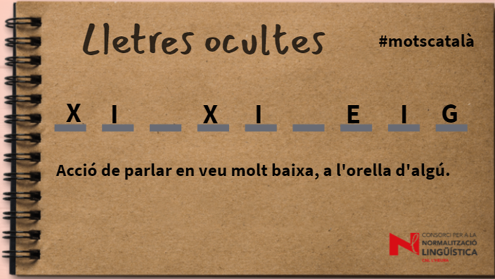 Sabeu quines són les lletres que falten per formar la paraula que vol dir “acció de parlar en veu molt baixa a l’orella d’algú”?