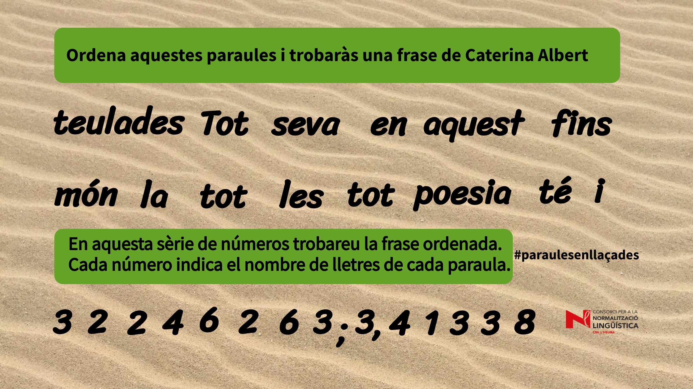 Ordeneu les paraules i descobrireu una frase de Caterina Albert.