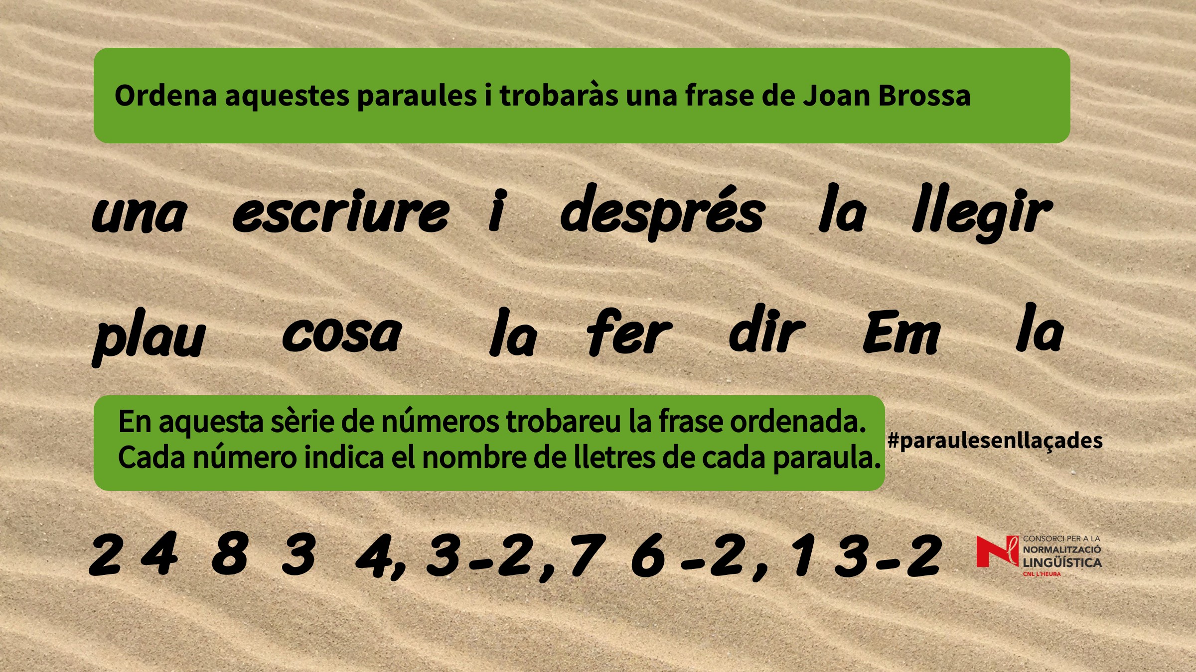 Ordeneu les paraules i descobrireu una frase de Joan Brossa.