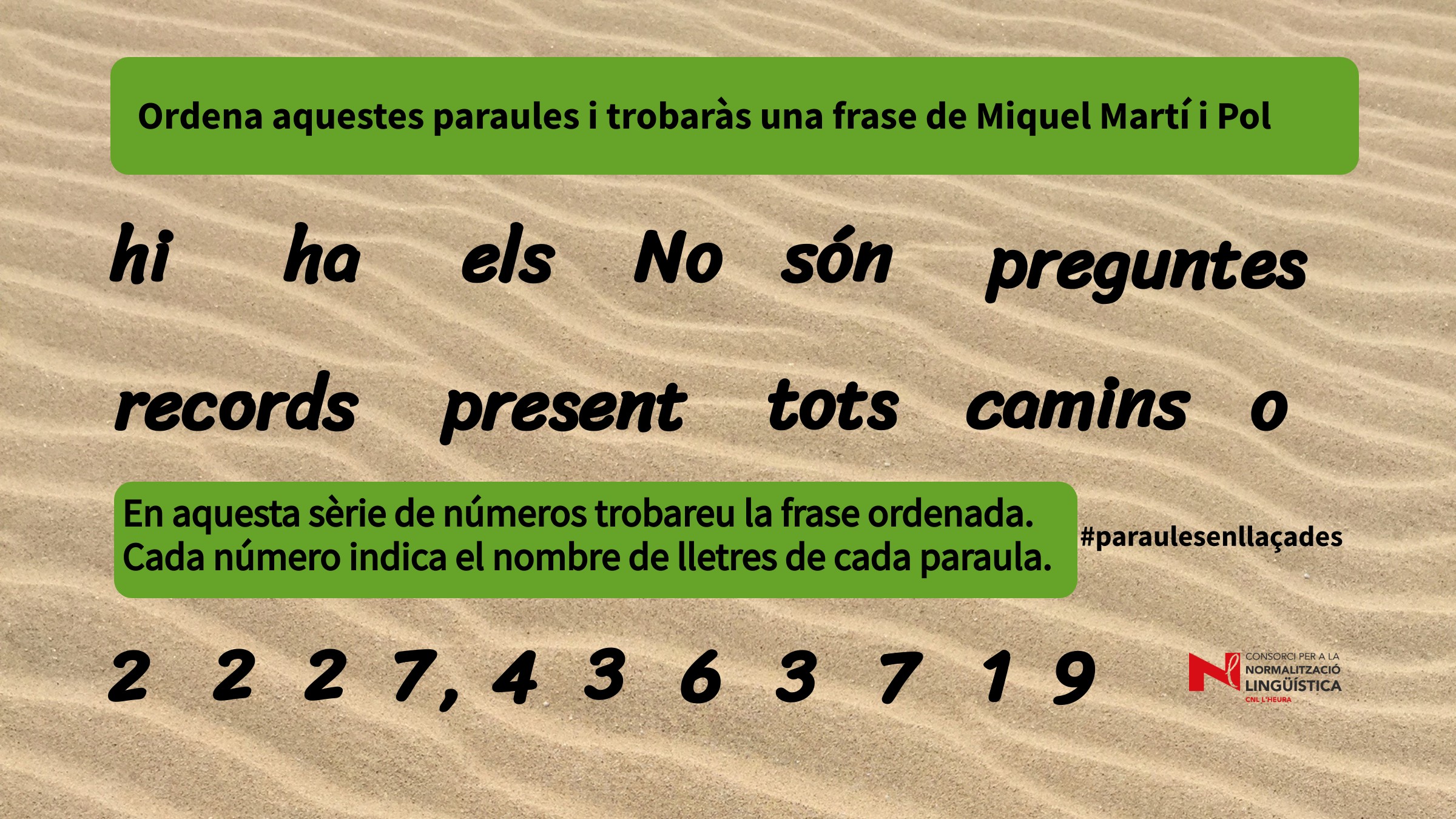 Ordeneu les paraules i descobrireu una frase de Miquel Martí i Pol.