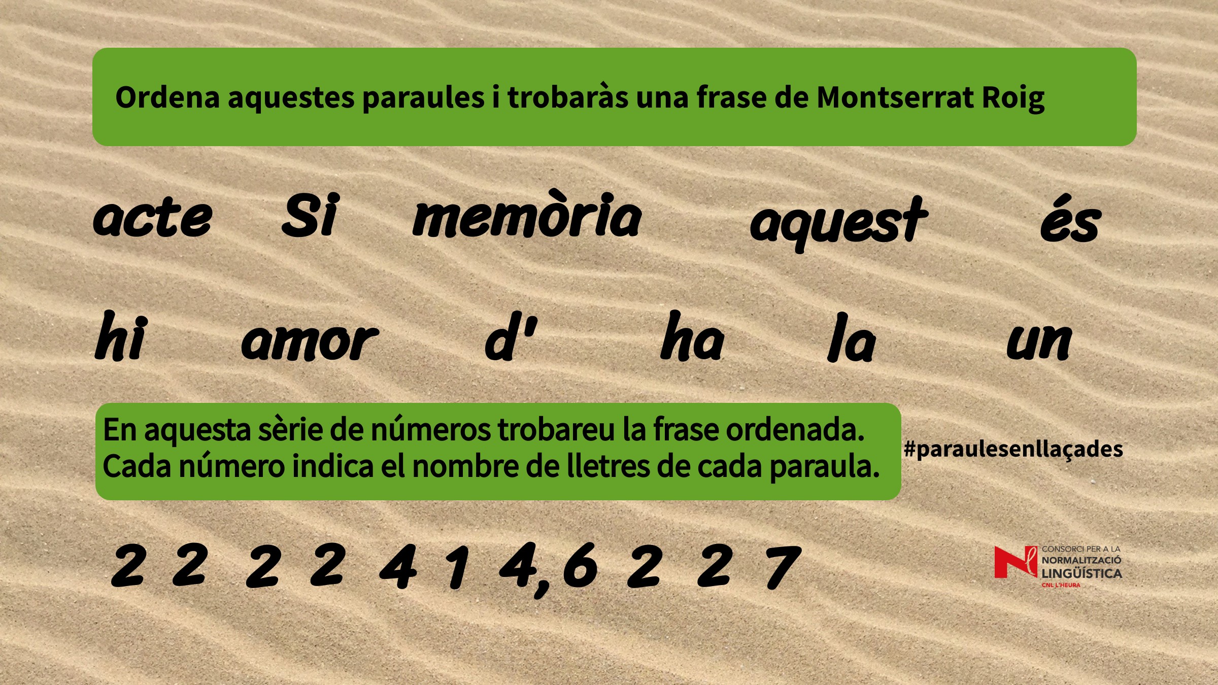 Ordeneu les paraules i descobrireu una frase de Montserrat Roig.
