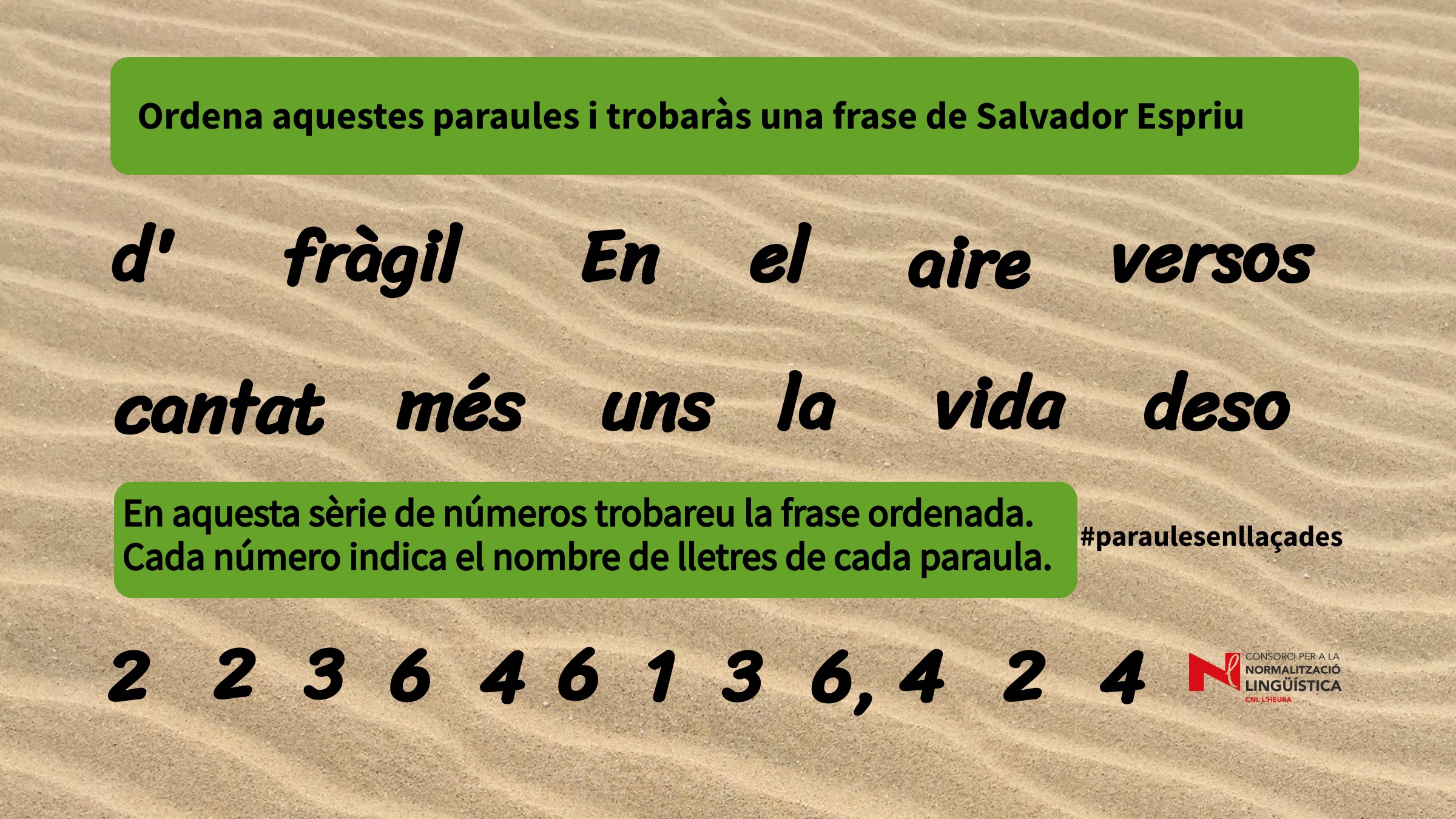 Ordeneu les paraules i descobrireu una frase de Salvador Espriu.