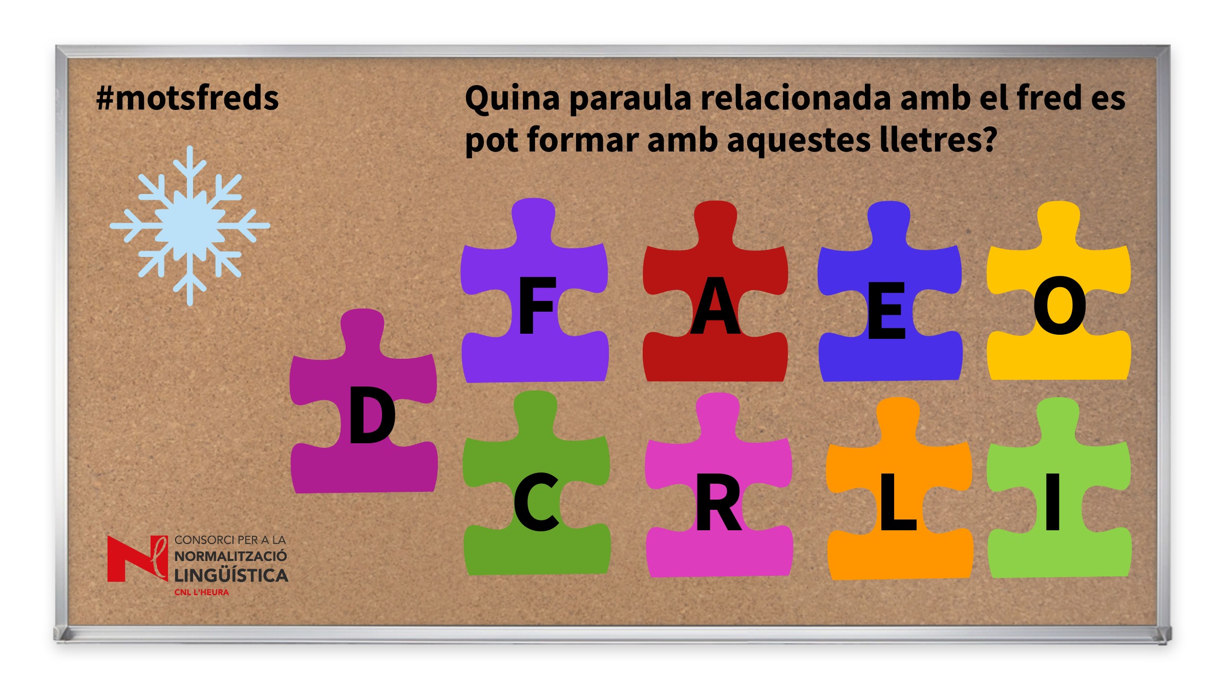 Sabeu quina paraula relacionada amb el fred es pot formar amb aquestes lletres? Forma part d'una campanya de comunicació, a les xarxes socials del CNL L'Heura, feta el gener de 2022.