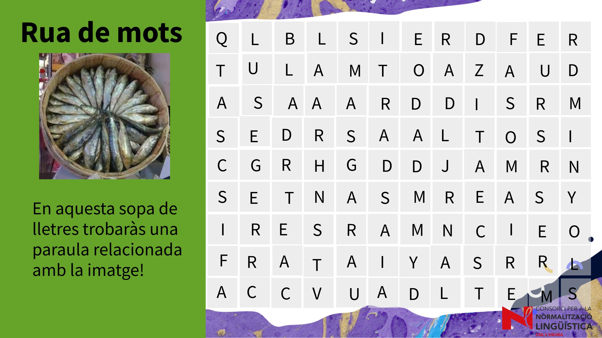 Rua de mots ens proposa descobrir paraules relacionades amb la imatge que acompanya la sopa de lletres. Febrer 2022