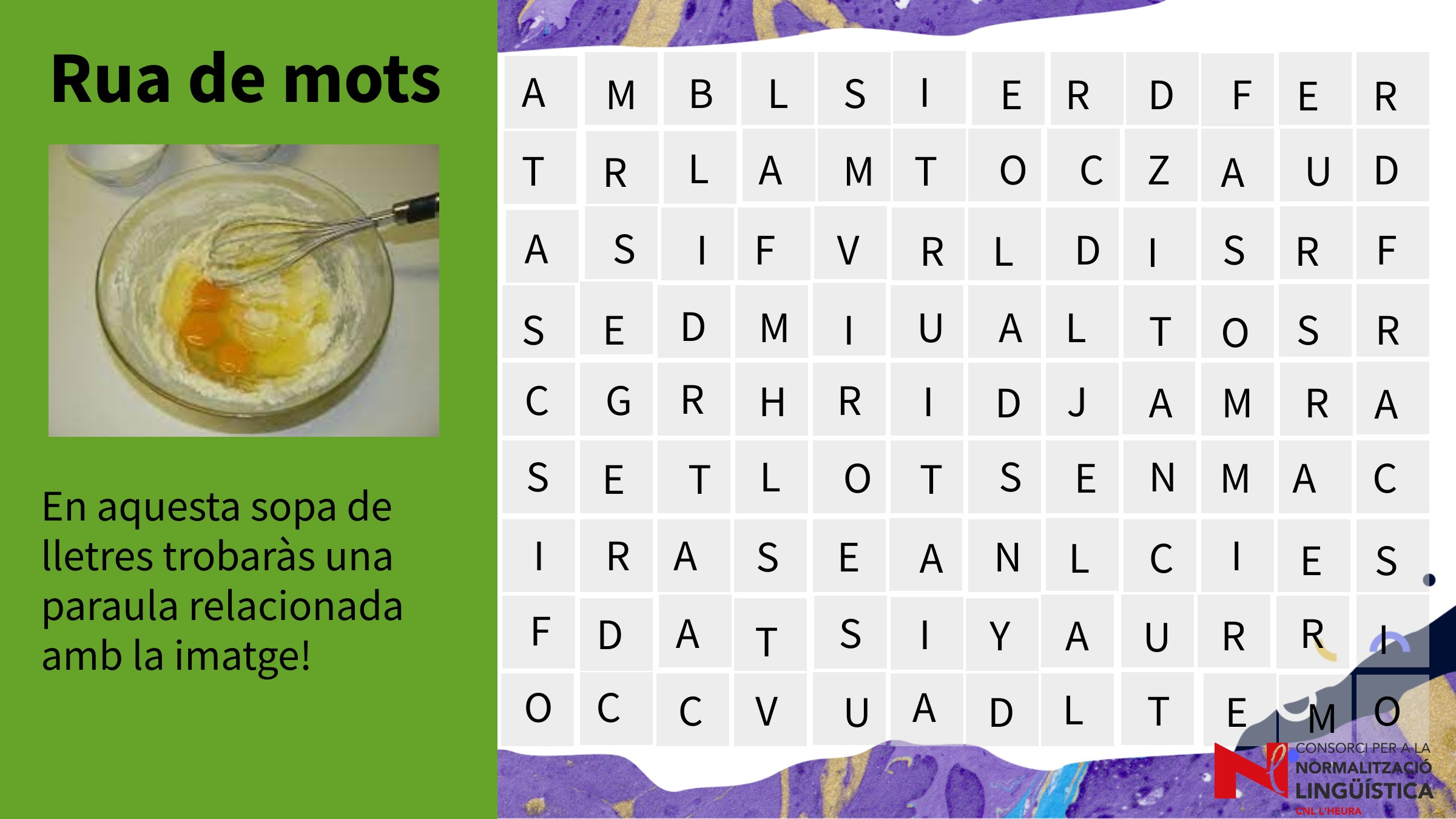 En aquesta sopa de lletres trobareu una paraula relacionada amb la imatge