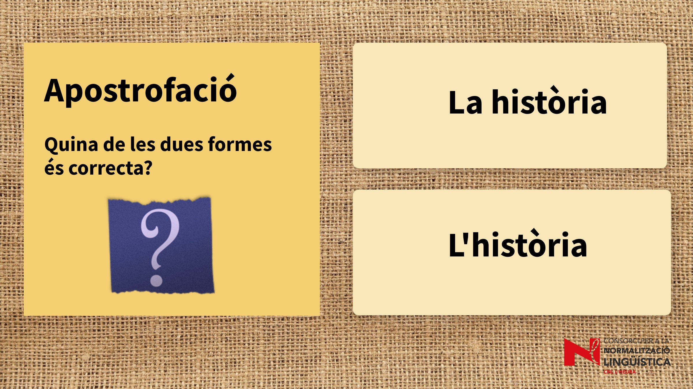 En aquest joc de llengua heu de triar la forma correcta de les dues proposades: amb apòstrof o sense.