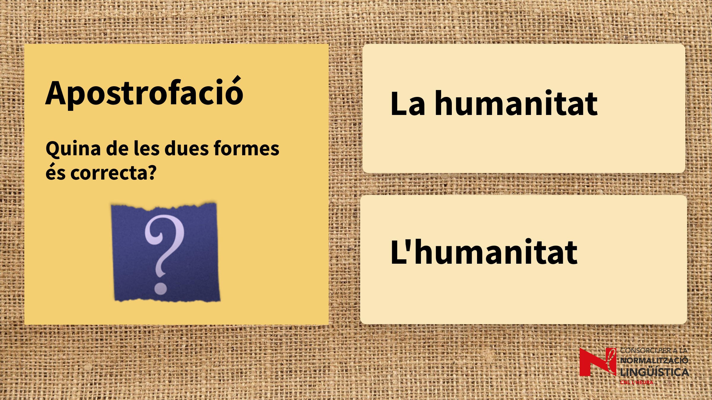 En aquest joc de llengua heu de triar la forma correcta de les dues proposades: amb apòstrof o sense.