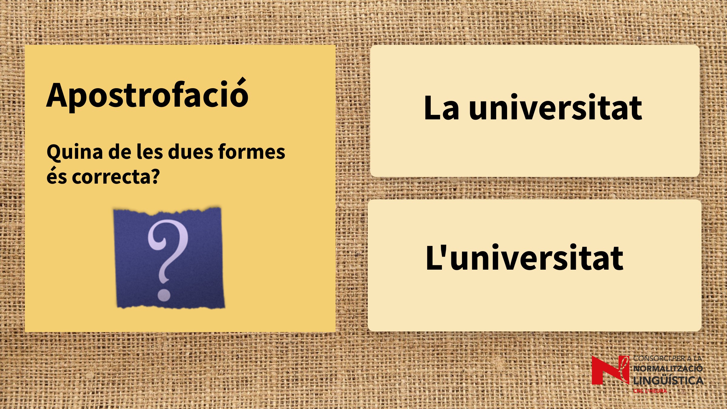 En aquest joc de llengua heu de triar la forma correcta de les dues proposades: amb apòstrof o sense.