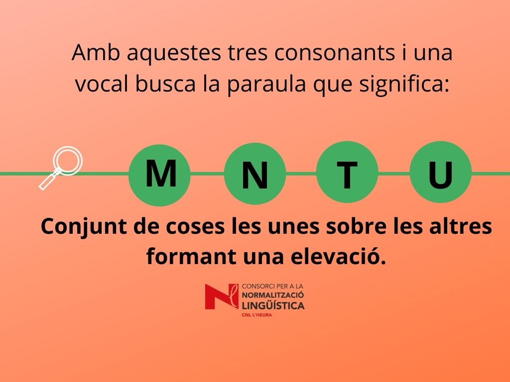 Joc lingüístic on s'ha de descobrir quina paraula amaguen les 4 lletres. Us pot ajudar la definició del mot.