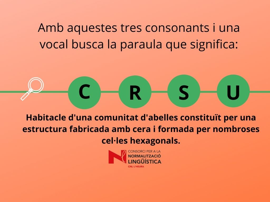 Joc lingüístic on s'ha de descobrir quina paraula amaguen les 4 lletres. Us pot ajudar la definició del mot.