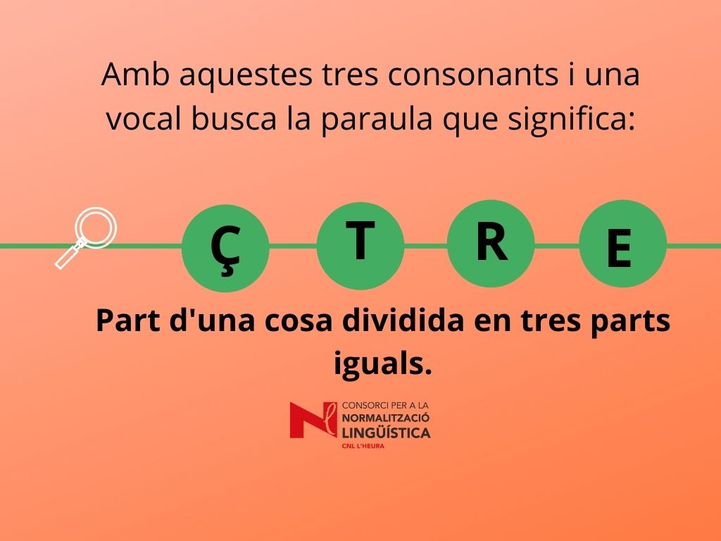 Joc lingüístic on s'ha de descobrir quina paraula amaguen les 4 lletres. Us pot ajudar la definició del mot.